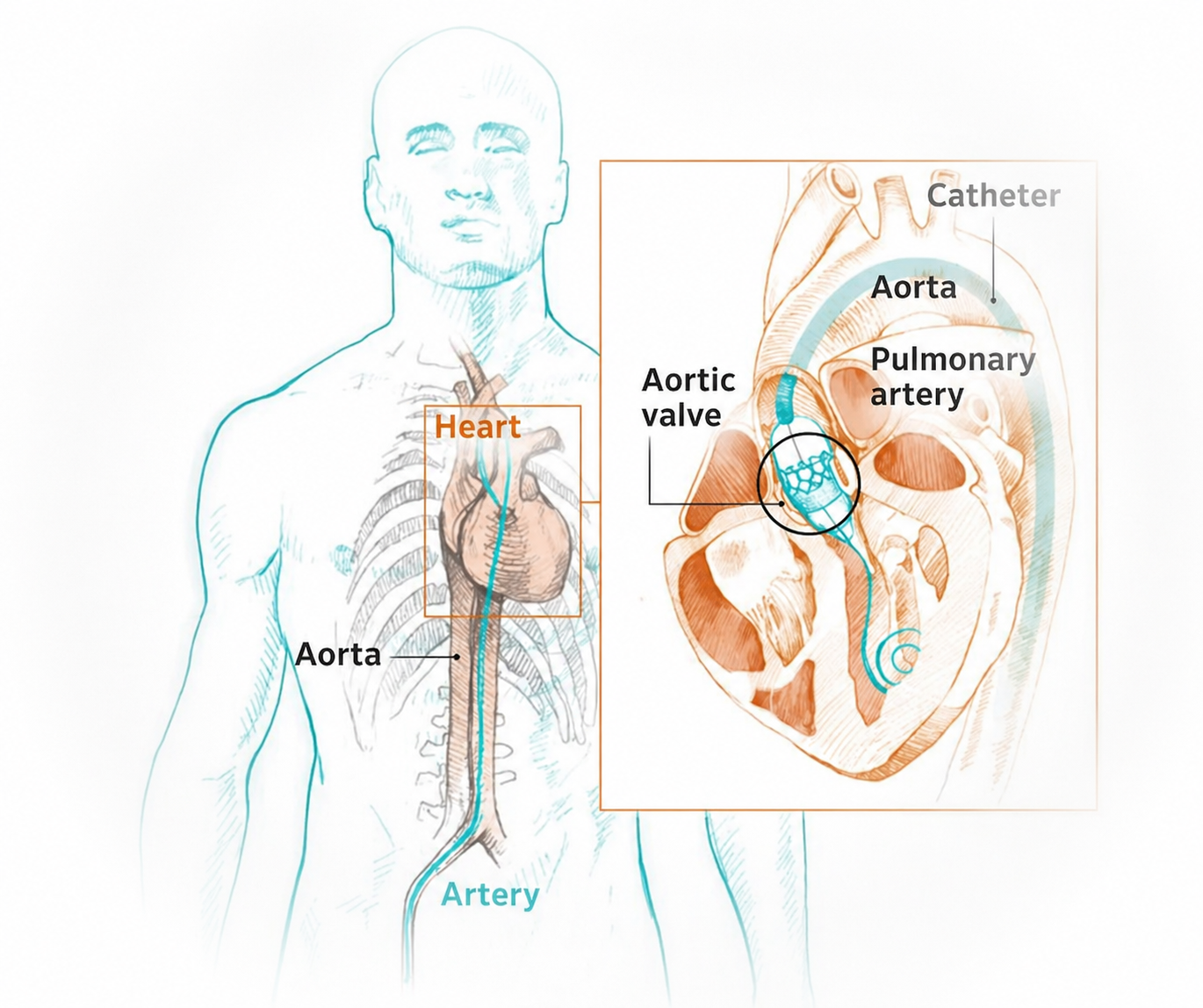 Illustration of a transcatheter aortic valve replacement (TAVR) procedure - via WSJ